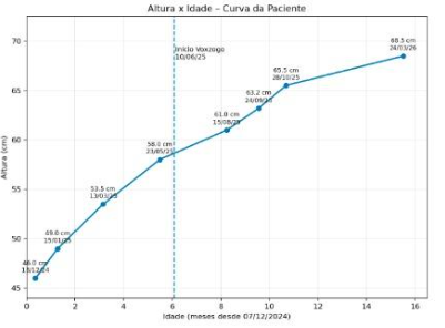 Atualmente, o gráfico de crescimento de Maria, que antes estava abaixo do padrão esperado para sua faixa etária, passou a apresentar uma curva ascendente consistente. Mais do que números, essa mudança simboliza um desenvolvimento físico mais equilibrado e uma melhora na saúde. O tratamento também está associado à redução de complicações clínicas, como otites frequentes e problemas respiratórios, que costumam afetar a qualidade de vida e o aprendizado na infância.²